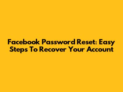 Facebook Password Reset: Easy Steps To Recover Your Account