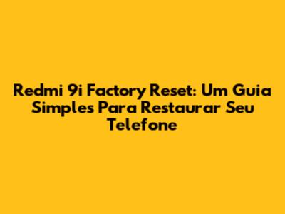 Redmi 9i Factory Reset: Um Guia Simples Para Restaurar Seu Telefone